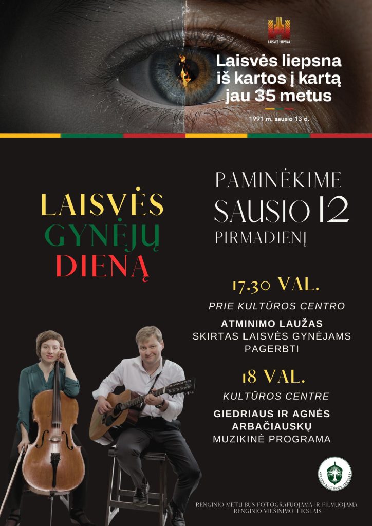 Sausio 13-oji yra viena ryškiausių mūsų visuomenės susitelkimo ir solidarumo pergalių, tapusi laisvės liepsnos tiltu į demokratinį pasaulį. Šiemet sausio 13 įvykiams sukanka 35 metai. Kviečiame visus sausio 12 d. uždegti laisvės liepsnas mintyse ir širdyse. Susirinkime prie laisvės gynėjams atminti skirto laužo ir pabūkime bendrystėje besiklausant muzikos ir poezijos.