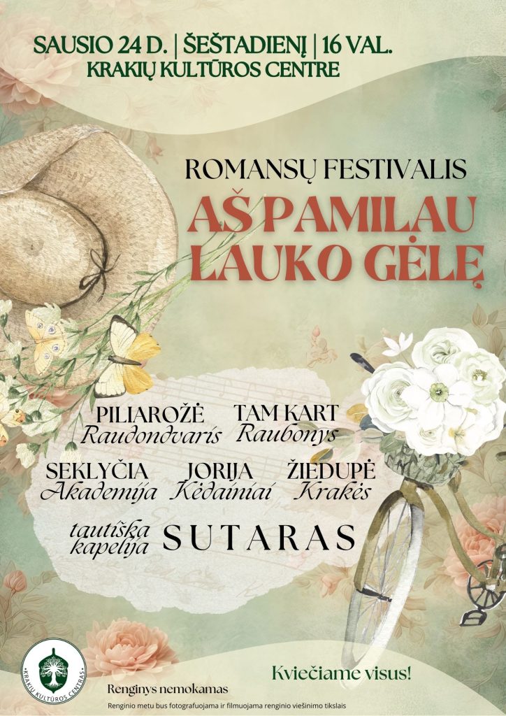 Viduržiemiui artėjant kviečiame sužadinti savo širdis jausminga romansų muzika ir dalyvauti pirmą kartą Krakėse vyksiančiame romansų festivalyje. Romansus atliks daug gražių kolektyvų, vietinių ir tolimesnių svečių. Ateikite, linguokite, dainuokite kartu Sausio 24 d. 16 val.